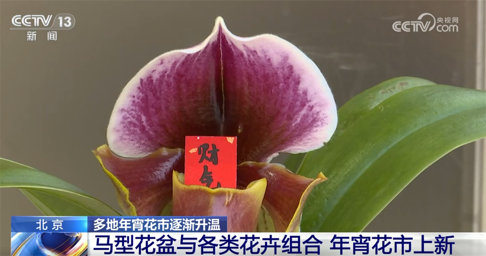 在北京花卉交易中心,各色年宵花爭(zhēng)奇斗艷。其中新品蘭花“兜蘭”十分惹眼,獨(dú)特的兜形花瓣里,被放入“順?biāo)臁薄敖】怠钡淖8?ㄆ⒁狻岸底№標(biāo)臁薄岸底〗】怠?,祝福滿滿,年味十足。野生兜蘭原本是珍稀植物,經(jīng)過(guò)多年人工馴化,品種產(chǎn)量快速增長(zhǎng),價(jià)格也從最初的近千元降至如今百元左右。
