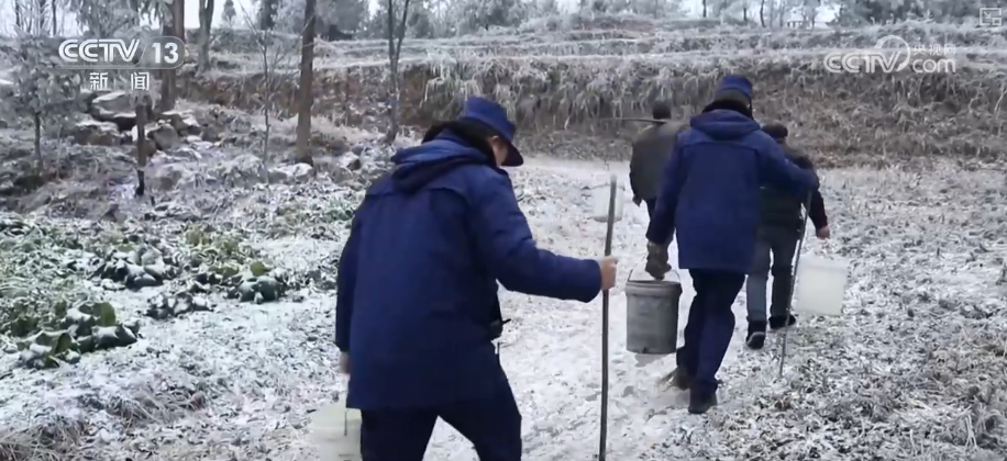 自1月19日出現(xiàn)低溫天氣以來,印江縣沙子坡鎮(zhèn)天星村已被冰雪覆蓋兩天,最低氣溫降至-5℃。該村16個村民組均位于海拔900米以上的山區(qū),日常生活用水依靠36口水池集中供應。持續(xù)低溫導致通往村民家的供水管道凍結,同時村內道路結冰,村民生活用水受到影響。得知這一情況后,當?shù)劓?zhèn)村干部與消防站人員迅速組成抗凝凍應急隊,前往水池取水并挑送至村民家中。