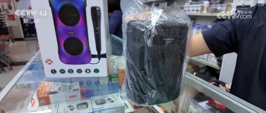 在南非首都開普敦的一家中國商品批發(fā)城里,顧客絡(luò)繹不絕。一款集收音機(jī)、燈光、移動電源等為一體的多功能藍(lán)牙音箱格外受歡迎。