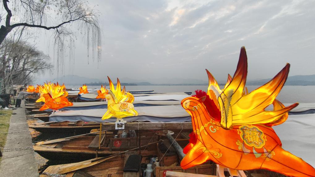 暖黃的馬燈光暈隨水波蕩漾,傳統(tǒng)手劃船裝點(diǎn)以吉祥馬燈,燈影與湖光相映……當(dāng)?shù)靥匾鉃橛有麓捍蛟斓摹榜R燈福氣船”全新升級(jí)亮相,為冬日西湖夜游增添一抹溫馨的年節(jié)色彩。首批登船的游客厲增業(yè)欣喜地說:“搭上‘福氣船’,馬年肯定‘馬上好運(yùn)’!”