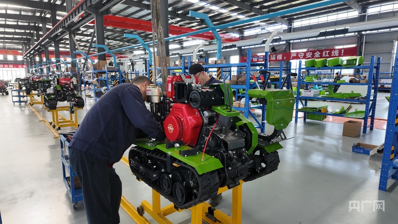 達(dá)州丘陵山區(qū)現(xiàn)代農(nóng)林裝備專業(yè)園區(qū)的生產(chǎn)線上,工人們正在組裝農(nóng)機(jī)裝備(央廣網(wǎng)記者 昌思榮 攝)