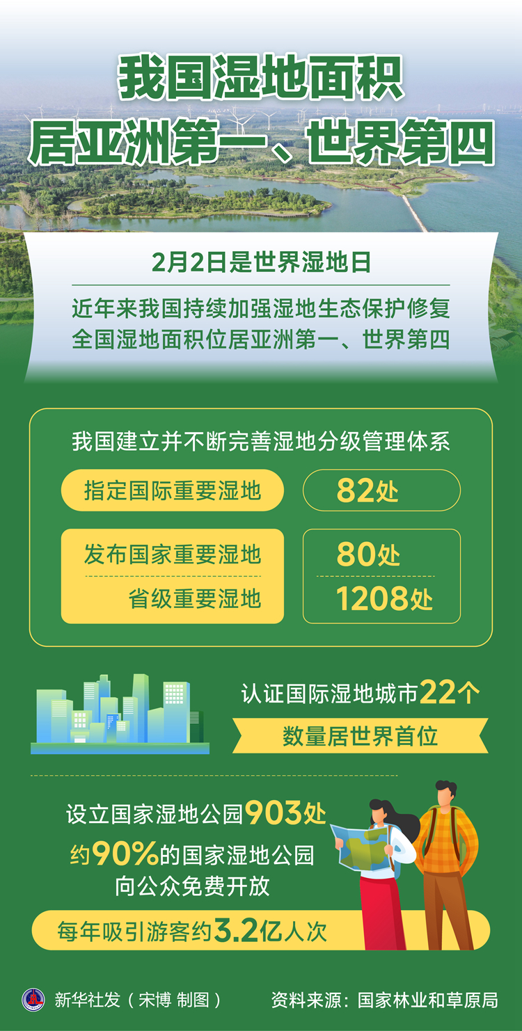 2月2日是世界濕地日。記者當(dāng)天從國家林業(yè)和草原局獲悉,近年來我國持續(xù)加強濕地生態(tài)保護修復(fù),全國濕地面積位居亞洲第一、世界第四,濕地保護形成重點治理和分類保護相結(jié)合的新格局。