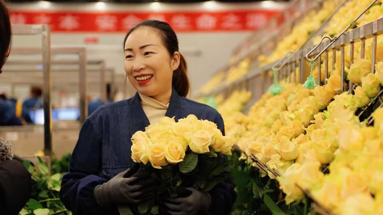 經(jīng)她們之手,高原玫瑰通過冷鏈物流,走向全國(guó)各地乃至海外。這讓張婷婷格外自豪:“我包的花有一天竟然能到國(guó)外。他們捧著它的時(shí)候,會(huì)是什么心情?會(huì)不會(huì)很開心?”