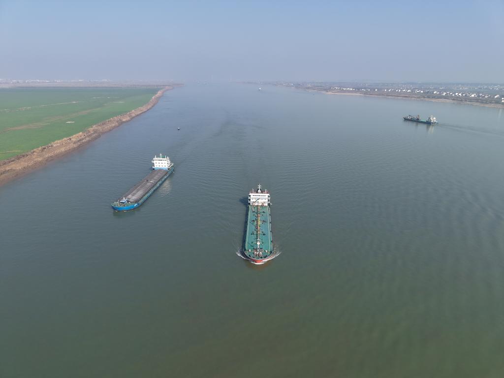 這是在湖南省臨湘市江南鎮(zhèn)長(zhǎng)江村拍攝的長(zhǎng)江(無(wú)人機(jī)照片)。新華社記者丁春雨 攝