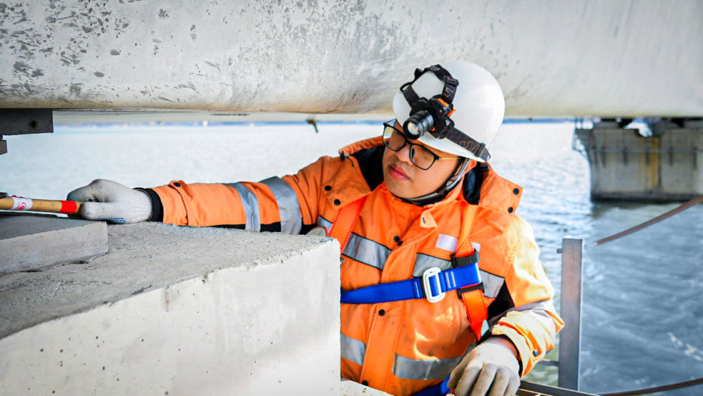 從踏上箱梁的那一刻起,他們就必須完成對(duì)212座高鐵橋梁、橋墩的巡視,對(duì)8000多顆高強(qiáng)度螺栓進(jìn)行敲擊檢查,為旅客和列車提供安全保障。