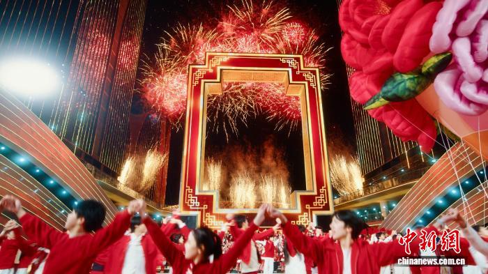 中新網(wǎng)義烏2月17日電(董易鑫)一扇巨型中式窗戶矗立于充滿科技感的浙江義烏全球數(shù)貿中心,舞臺向前延展,兩側裝飾如潮涌浪花般,鋪陳出“勇立潮頭”的意象……