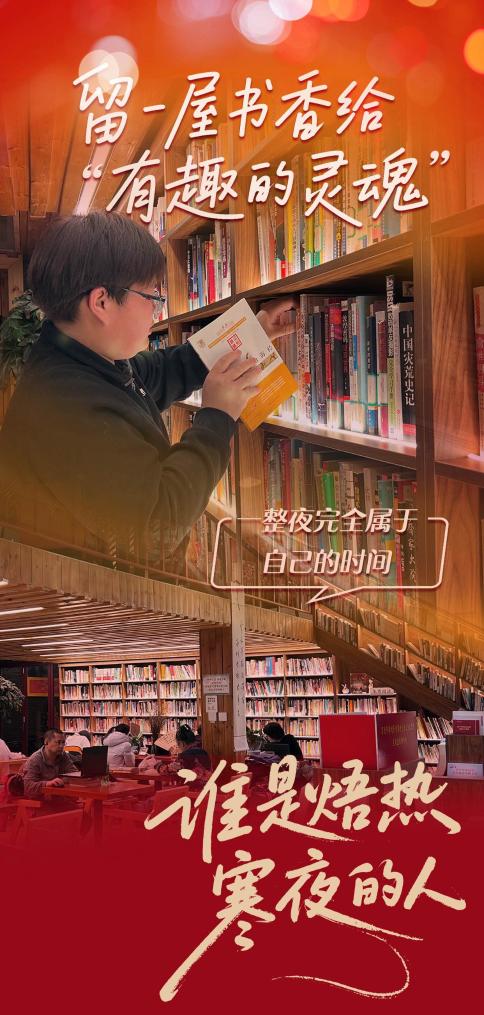 短短一個(gè)月,程澤鑫結(jié)識(shí)了很多“有趣的靈魂”——有一位白天在廚房“顛勺”的“書(shū)友”,嫌工作場(chǎng)所嘈雜,靜不下心,隔三岔五就來(lái)這里“泡”著,一讀就是一宿。有一回,程澤鑫見(jiàn)他讀得出神,水杯見(jiàn)底,便過(guò)去幫他續(xù)熱水,兩人就這么熟識(shí)了。