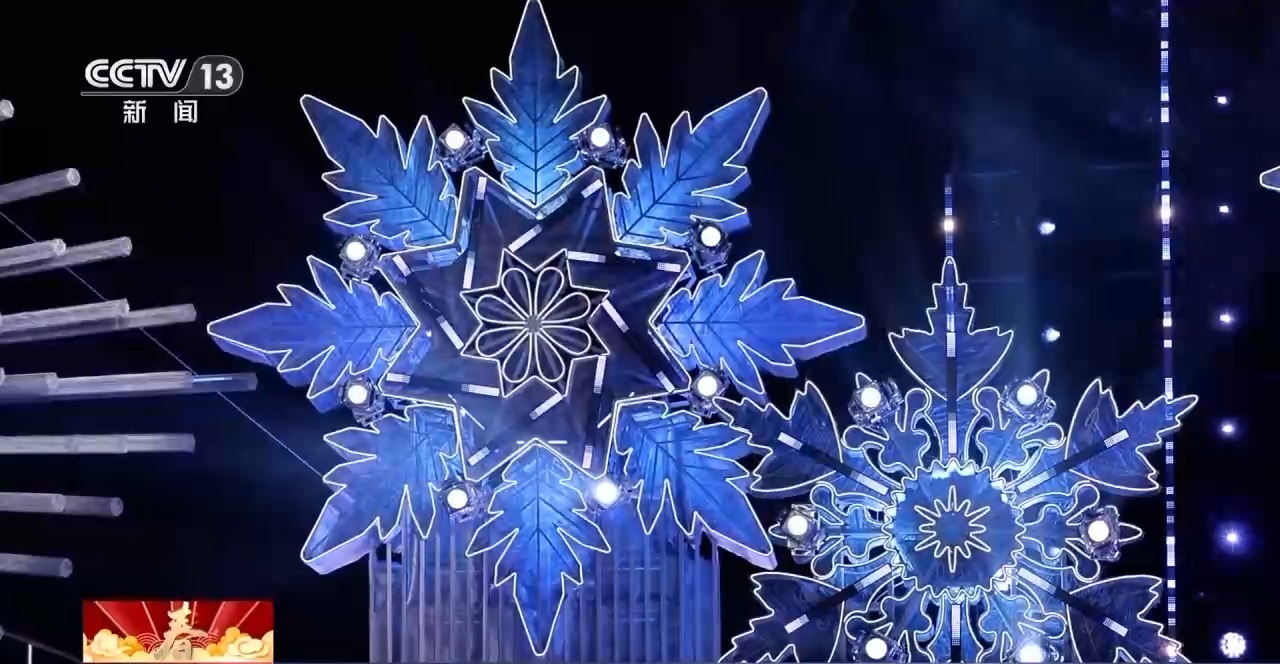 總臺(tái)《2026年春節(jié)聯(lián)歡晚會(huì)》哈爾濱分會(huì)場(chǎng)制片主任 曹天抒:有十朵雪花,每個(gè)雪花都是用特殊的一種鋼網(wǎng)的材質(zhì),做出來晶瑩剔透的效果。這個(gè)冰的制作,我們也花了很多心思。所以我們?cè)谥票^程當(dāng)中,加了一種白色的染料,讓它更好地作為一個(gè)介質(zhì)來反映投影,出現(xiàn)一個(gè)夢(mèng)幻的、清楚的效果。