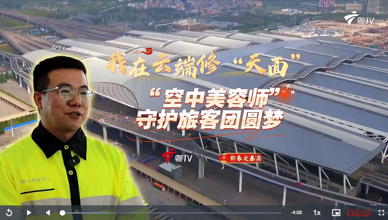 今天的新春走基層,讓我們跟隨國(guó)鐵廣州局廣州南房建工區(qū)工長(zhǎng)黃榮彬,去看看這些車(chē)站“空中美容師”的日常。