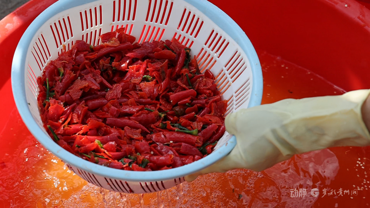 貴州省農(nóng)科院辣椒研究所“黔辣”育種團(tuán)隊(duì)成員劉崇政正在分離采收的辣椒種