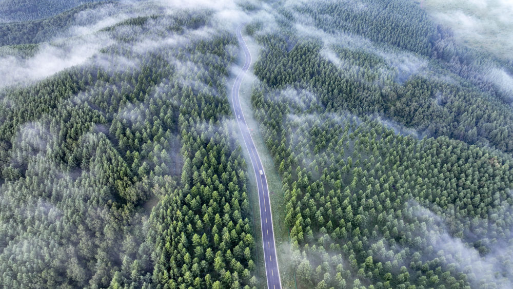 2024年7月26日拍攝的塞罕壩國(guó)家級(jí)自然保護(hù)區(qū)景色(無(wú)人機(jī)照片)。夏日清晨,位于河北省承德市的塞罕壩國(guó)家級(jí)自然保護(hù)區(qū)滿目青翠,浩瀚林海壯美如畫。新華社發(fā)(王立群 攝)