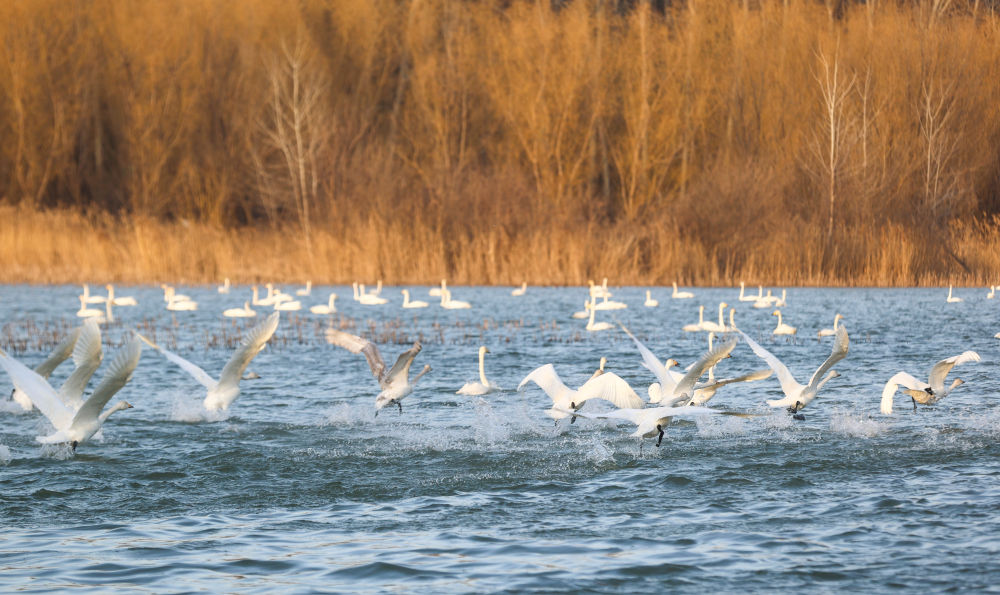 每年11月下旬至次年3月,大天鵝都會(huì)到位于黃河中游的三門(mén)峽黃河濕地越冬。據(jù)三門(mén)峽黃河天鵝湖濕地保護(hù)中心統(tǒng)計(jì),天鵝數(shù)量從20世紀(jì)90年代的幾十只,增至如今的1.6萬(wàn)余只。