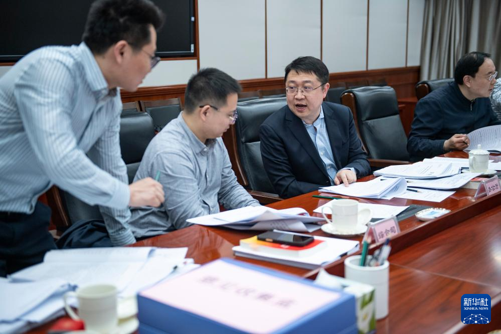3月7日,財(cái)政部工作人員根據(jù)代表意見(jiàn)建議討論修改2026年預(yù)算報(bào)告。新華社記者 孫瑞博 攝