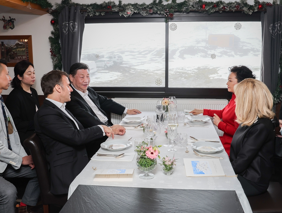 當?shù)貢r間5月7日,應(yīng)法國總統(tǒng)馬克龍?zhí)貏e邀請,國家主席習(xí)近平乘專機來到法國西南部上比利牛斯省訪問。在圖爾馬萊山口“牧羊人驛站”,習(xí)近平和夫人彭麗媛同馬克龍和夫人布麗吉特憑窗而坐,在輕松愉快的氛圍中就一些重要問題進行戰(zhàn)略溝通。新華社記者 姚大偉 攝