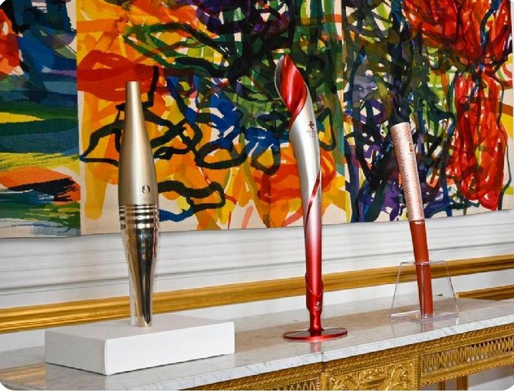 這是習(xí)近平主席同馬克龍總統(tǒng)會(huì)談前,兩國(guó)元首夫婦互贈(zèng)的禮品之一。習(xí)近平主席贈(zèng)送給馬克龍總統(tǒng)的是北京雙奧火炬,馬克龍總統(tǒng)則以巴黎奧運(yùn)火炬回贈(zèng)。