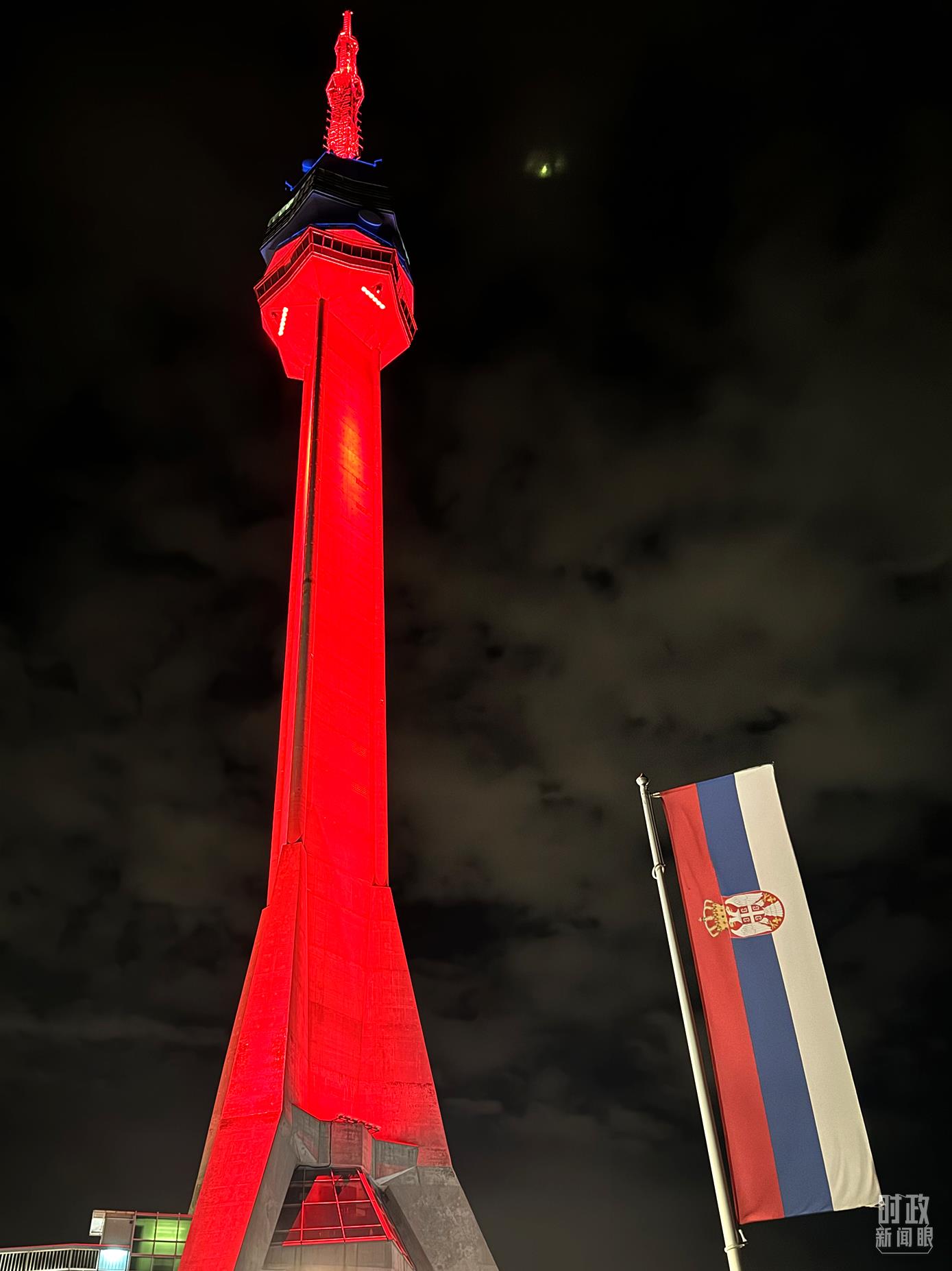 貝爾格萊德夜晚的中國(guó)紅。(總臺(tái)央視記者李增仁拍攝)