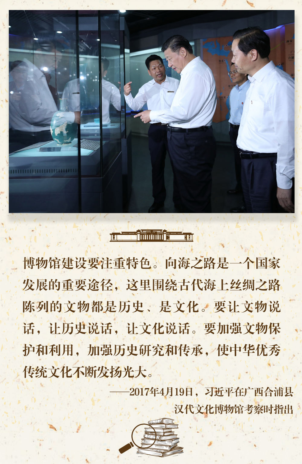 “一個(gè)博物館就是一所大學(xué)校”。長(zhǎng)期以來,習(xí)近平總書記十分關(guān)心博物館事業(yè)發(fā)展,多次在不同場(chǎng)合對(duì)發(fā)揮好博物館相關(guān)功能提出要求。