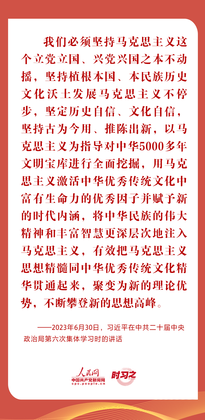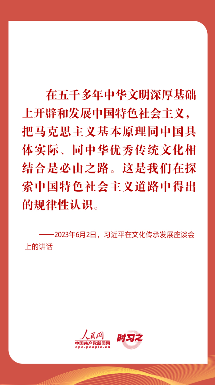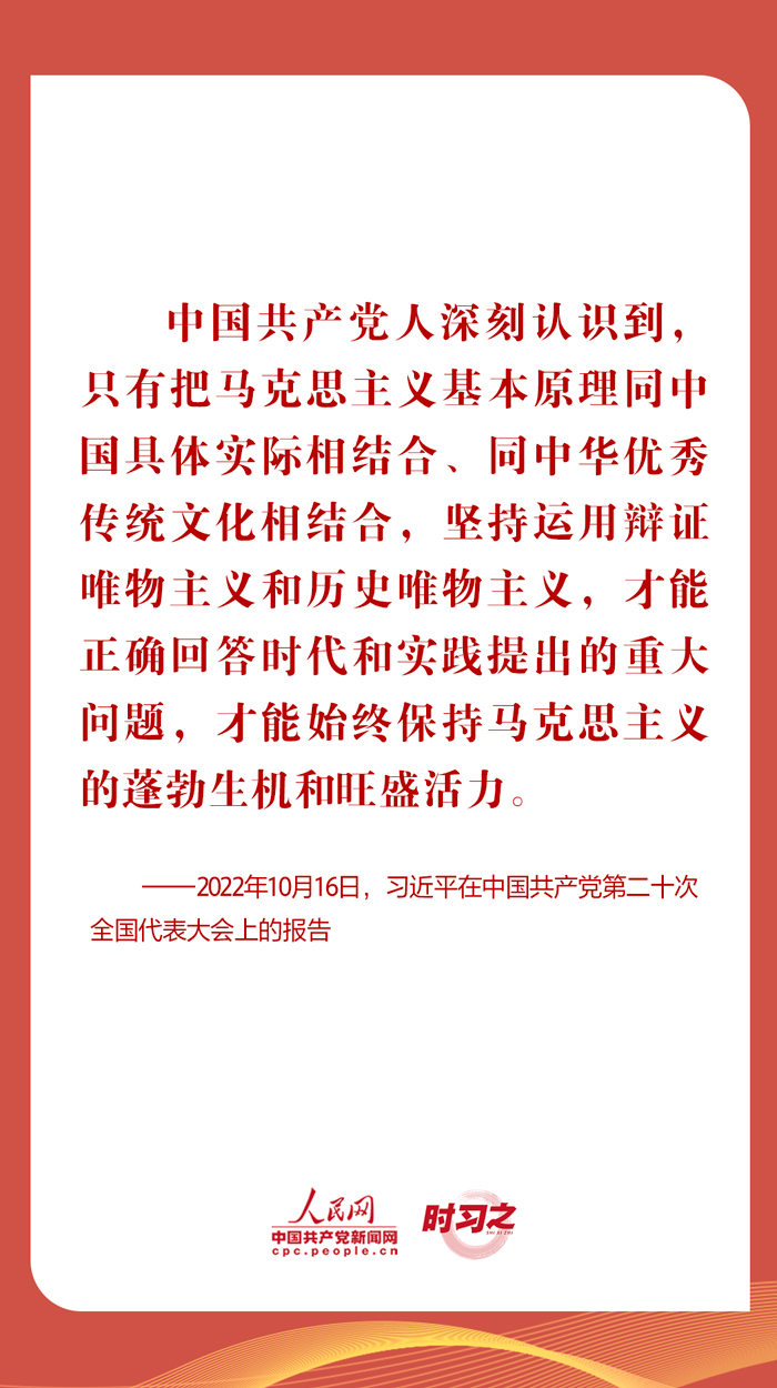 從在慶祝中國(guó)共產(chǎn)黨成立100周年大會(huì)上明確提出“兩個(gè)結(jié)合”,到在黨的二十大報(bào)告中深刻闡釋“兩個(gè)結(jié)合”,再到在文化傳承發(fā)展座談會(huì)上系統(tǒng)闡述“兩個(gè)結(jié)合”的精髓要義,習(xí)近平總書記關(guān)于“兩個(gè)結(jié)合”的一系列新思想新觀點(diǎn)新論斷,立意高遠(yuǎn),視野宏闊。一起學(xué)習(xí)相關(guān)重要論述,深刻領(lǐng)會(huì)把握“兩個(gè)結(jié)合”的豐富內(nèi)涵。