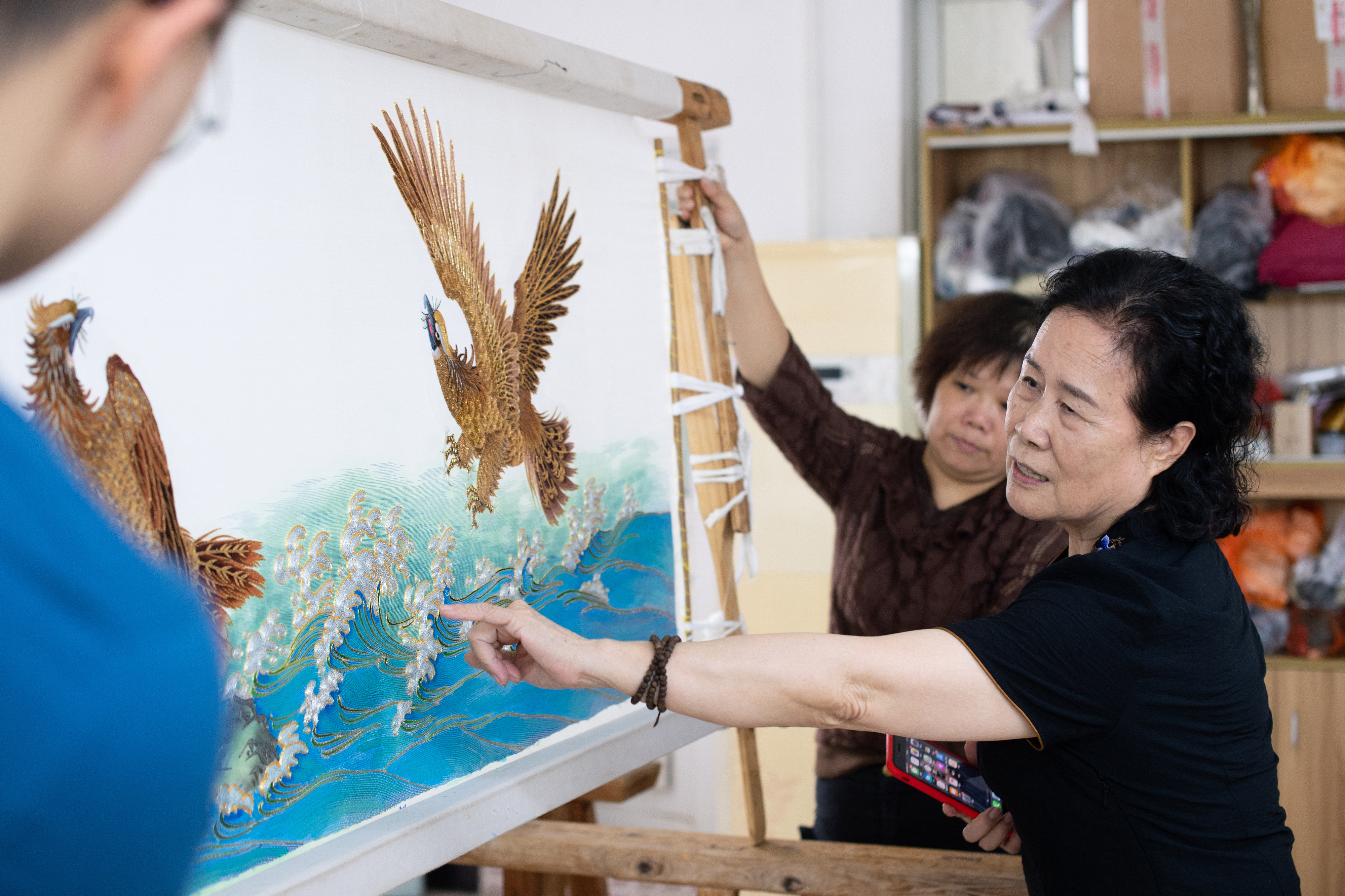 國(guó)家級(jí)非物質(zhì)文化遺產(chǎn)代表性項(xiàng)目粵繡(潮繡)代表性傳承人康惠芳。