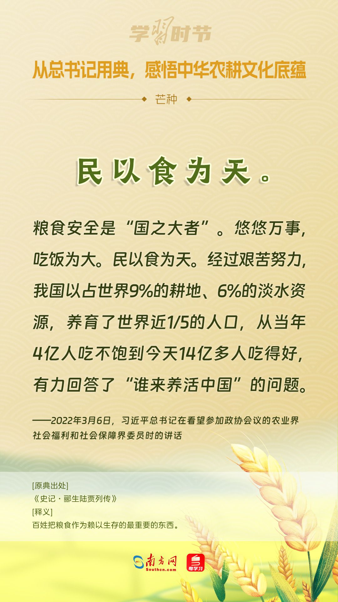 6月5日迎來芒種節(jié)氣,讓我們一起重溫習(xí)近平總書記引用過的關(guān)于農(nóng)耕的經(jīng)典名句,共同領(lǐng)略中華優(yōu)秀傳統(tǒng)文化的風(fēng)采與魅力。