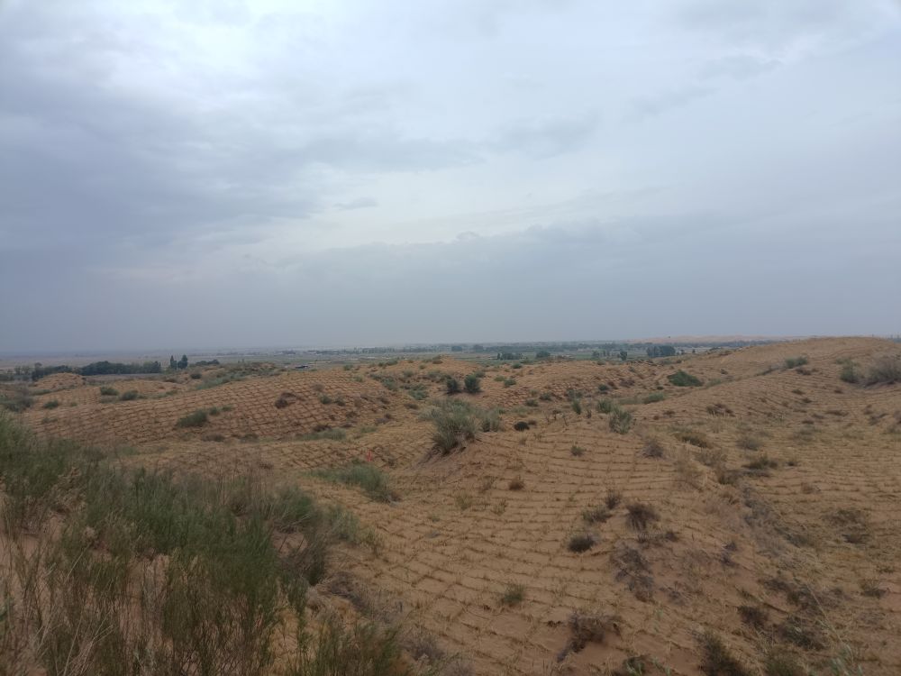 這片黃沙橫跨寧夏和內(nèi)蒙古兩地,屬于毛烏素沙地。