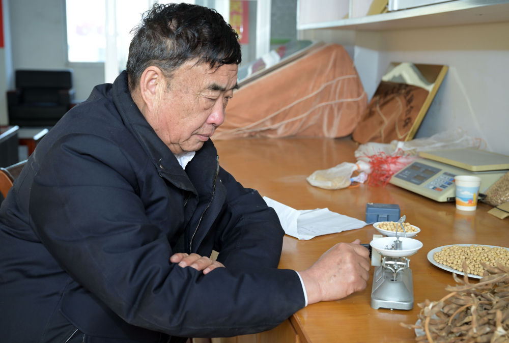 2023年2月21日,在太和縣淙祥現(xiàn)代農(nóng)業(yè)種植專業(yè)合作社,徐淙祥在實(shí)驗(yàn)室里對(duì)農(nóng)作物樣品進(jìn)行稱重和記錄。