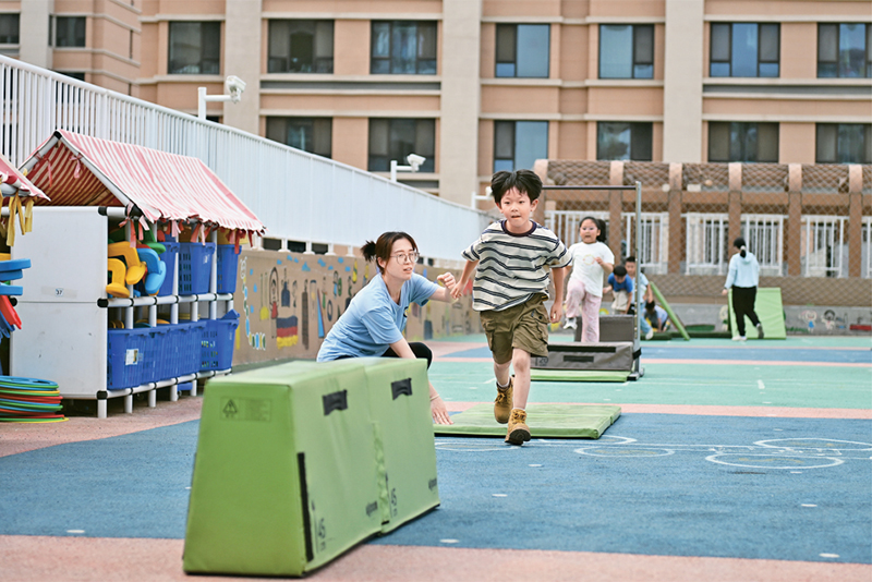 近年來,河北雄安新區(qū)通過創(chuàng)新教育發(fā)展體制機(jī)制、高標(biāo)準(zhǔn)配建教育設(shè)施、引入專業(yè)教師隊(duì)伍、引進(jìn)優(yōu)質(zhì)教育資源等方式,不斷推動(dòng)教育高質(zhì)量發(fā)展。圖為2024年5月23日,當(dāng)?shù)赜變簣@的孩子們?cè)谑彝饣顒?dòng)。 新華社記者 牟宇/攝