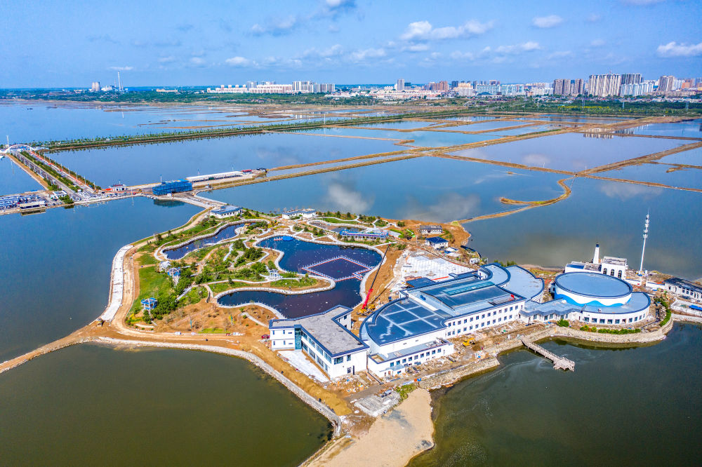 2024年4月30日拍攝的運城鹽湖全面提升改造項目現(xiàn)場(無人機照片)。