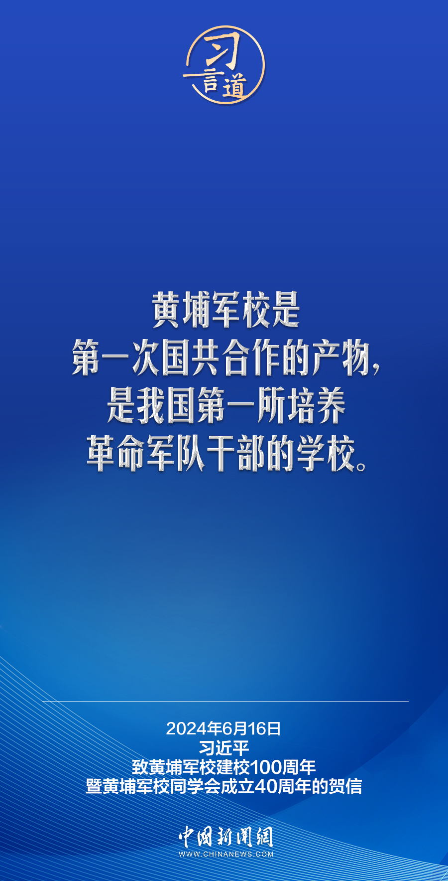 在黃埔軍校建校100周年暨黃埔軍校同學(xué)會(huì)成立40周年之際,中共中央總書記、國(guó)家主席、中央軍委主席習(xí)近平發(fā)來賀信,代表中共中央向黃埔軍校同學(xué)會(huì)表示熱烈祝賀,向廣大海內(nèi)外黃埔同學(xué)及其親屬致以誠(chéng)摯問候。習(xí)近平指出——