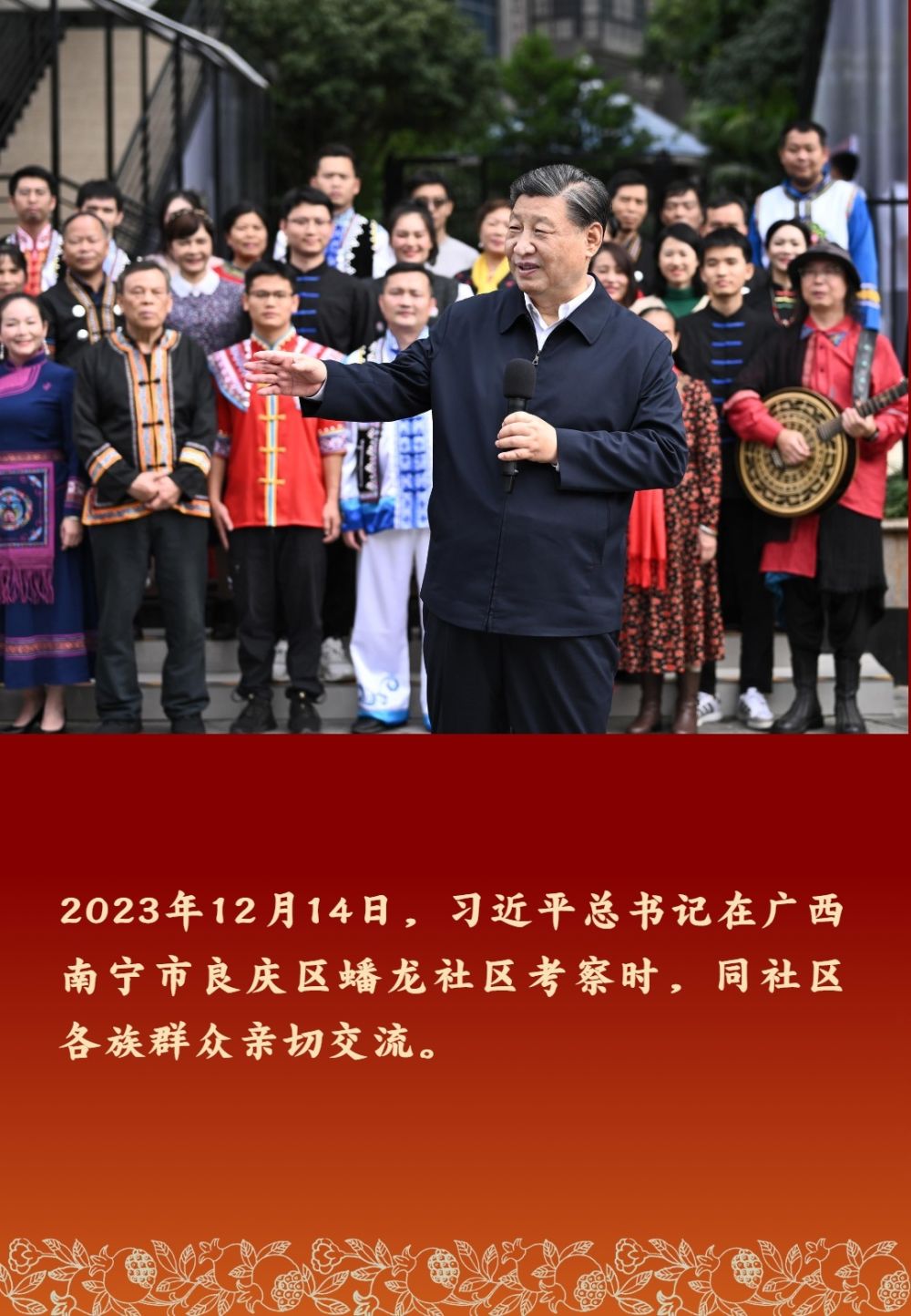 以習近平同志為核心的黨中央高度重視民族工作,十分關心少數(shù)民族群眾。習近平總書記多次深入民族地區(qū)考察調研,同各族群眾親切交流,勉勵大家鑄牢中華民族共同體意識,像石榴籽那樣緊緊抱在一起。