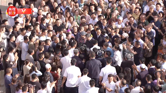 6月19日傍晚時分,寧夏銀川市金鳳區(qū)長城花園社區(qū)廣場,習近平總書記在這里考察即將結(jié)束時,居民們依依不舍,紛紛涌上前去,圍繞著總書記鼓掌歡呼,爭相與總書記握手。