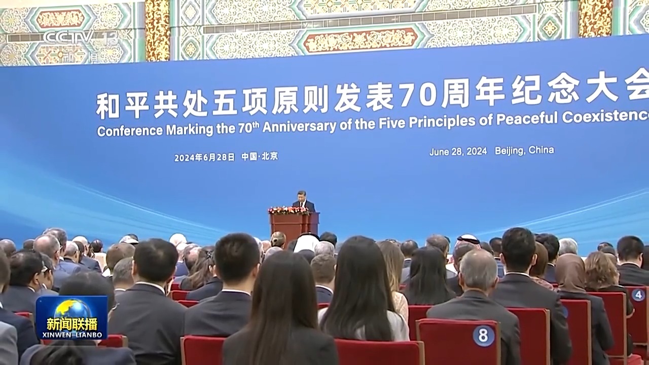 6月28日,國家主席習(xí)近平出席和平共處五項原則發(fā)表70周年紀(jì)念大會,并發(fā)表題為《弘揚和平共處五項原則,攜手構(gòu)建人類命運共同體》的重要講話。習(xí)近平主席在講話中全面闡釋和平共處五項原則的精神內(nèi)涵和時代價值,在世界百年未有之大變局中指明構(gòu)建人類命運共同體的前進方向,發(fā)出“全球南方”同世界各國人民共創(chuàng)美好未來的時代強音。與會國內(nèi)外人士表示,習(xí)近平主席的重要講話飽含著對歷史的深邃思考、對現(xiàn)實的深刻分析、對未來的長遠謀劃,必將對推動各國同心協(xié)力建設(shè)更加美好世界產(chǎn)生重大而深遠的影響。