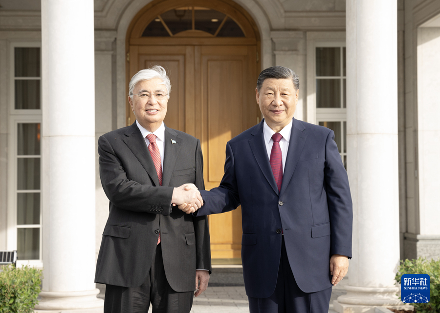 當(dāng)?shù)貢r(shí)間7月2日晚,國(guó)家主席習(xí)近平應(yīng)邀同哈薩克斯坦總統(tǒng)托卡耶夫共進(jìn)晚餐,在愉快溫馨的環(huán)境中就中哈關(guān)系和共同關(guān)心的問題進(jìn)行了親切友好的交流。這是習(xí)近平同托卡耶夫握手。