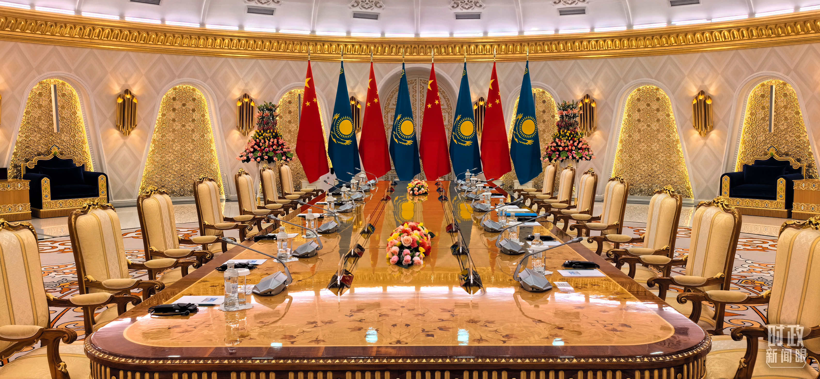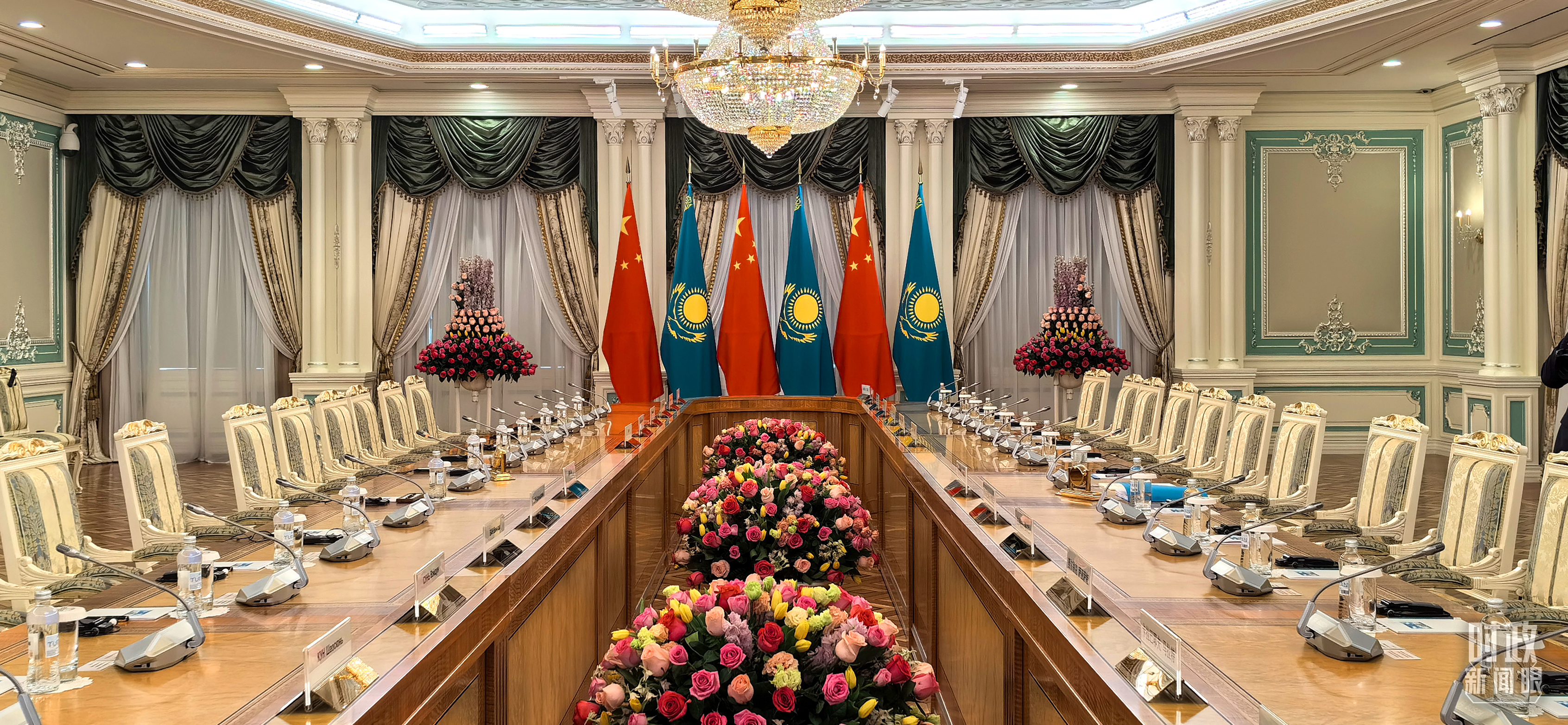 中哈元首小范圍會(huì)談開始前的現(xiàn)場(chǎng)。(總臺(tái)央視記者劉岳拍攝)