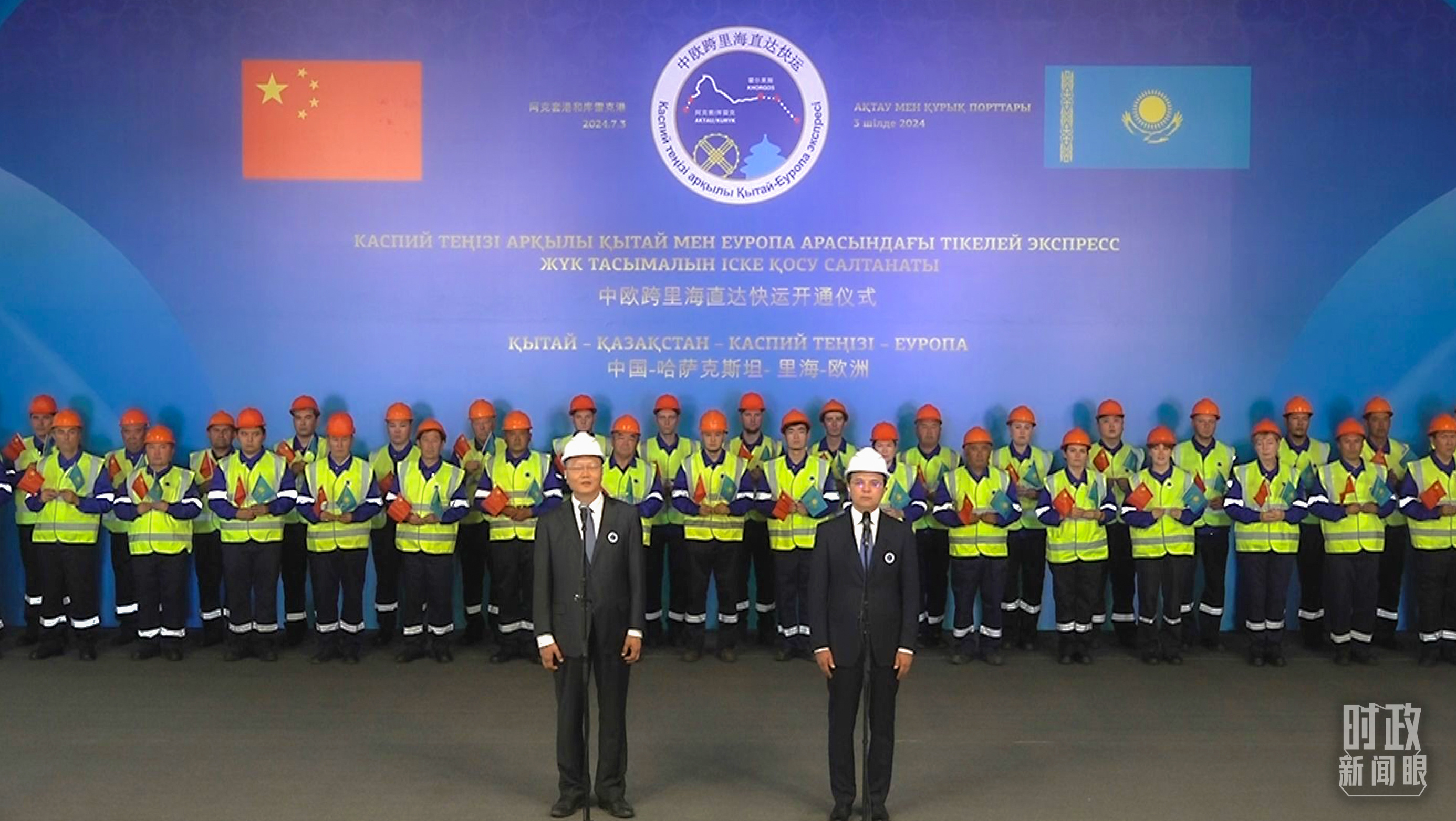 中歐跨里海直達(dá)快運(yùn)開通儀式現(xiàn)場(chǎng)。