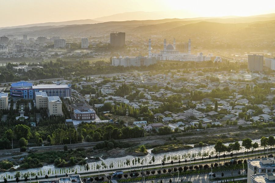 這是2024年6月26日拍攝的塔吉克斯坦首都杜尚別城市風(fēng)光。新華社記者 曹陽 攝