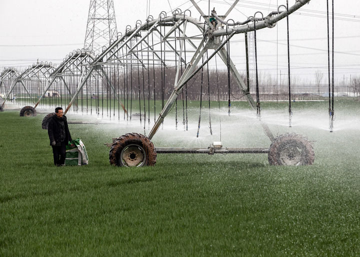 2024年3月18日,在河南省焦作市博愛縣孝敬鎮(zhèn)東原莊村瑞輝家庭農(nóng)場,村民使用全自動(dòng)指針式噴灌機(jī)進(jìn)行澆灌作業(yè)。