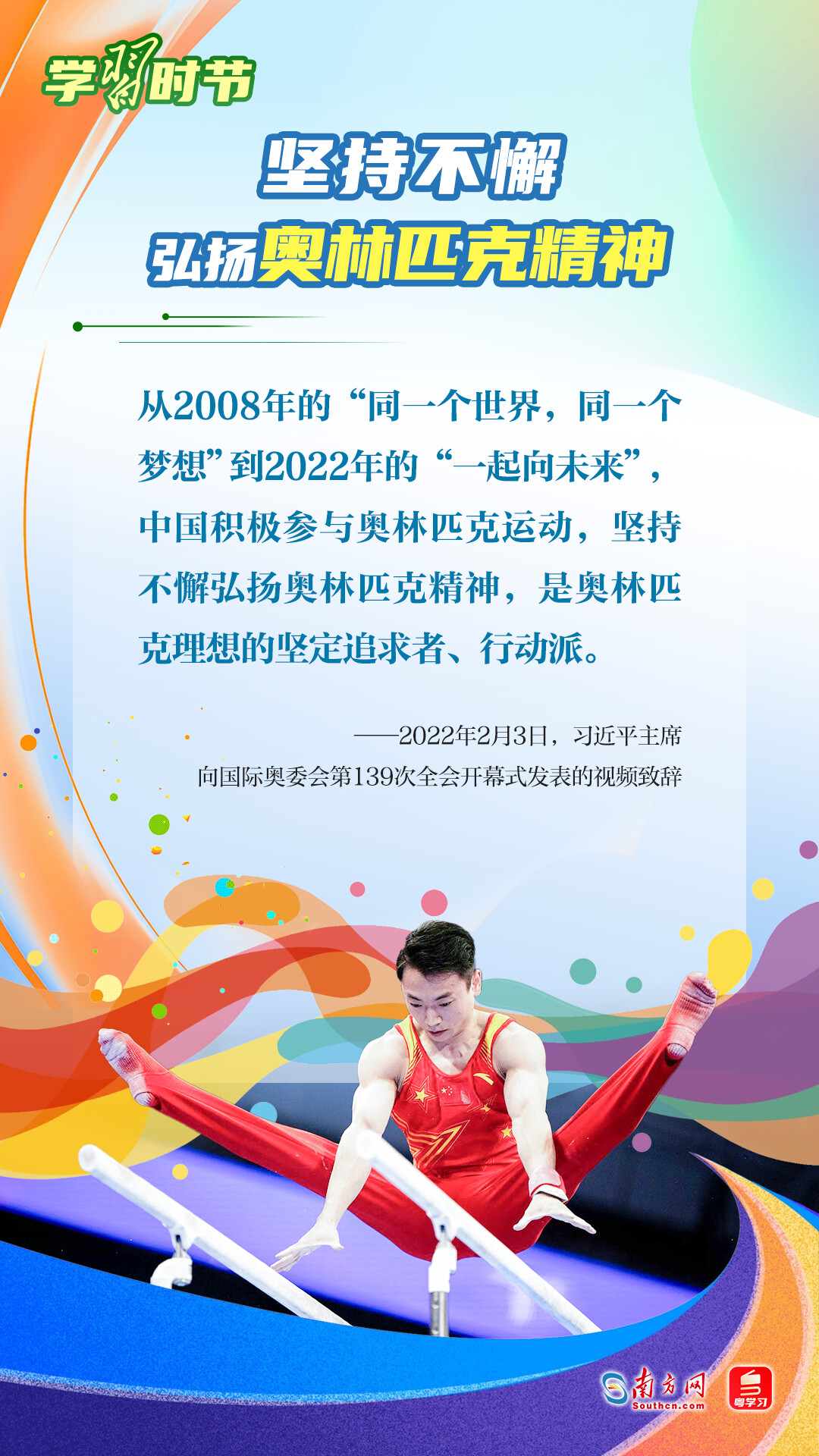 “我們不以勝負(fù)論英雄,同時(shí)英雄就要敢于爭(zhēng)先、敢于爭(zhēng)第一?!绷?xí)近平總書(shū)記曾在不同場(chǎng)合論述奧林匹克精神,深刻闡明了勝與負(fù)、成與敗的辯證關(guān)系,對(duì)奧林匹克“更快、更高、更強(qiáng)——更團(tuán)結(jié)”的格言進(jìn)行詮釋。讓我們一同學(xué)習(xí)習(xí)近平總書(shū)記對(duì)奧林匹克精神的重要論述,心懷夢(mèng)想、奮勇拼搏,攜手走向美好明天。