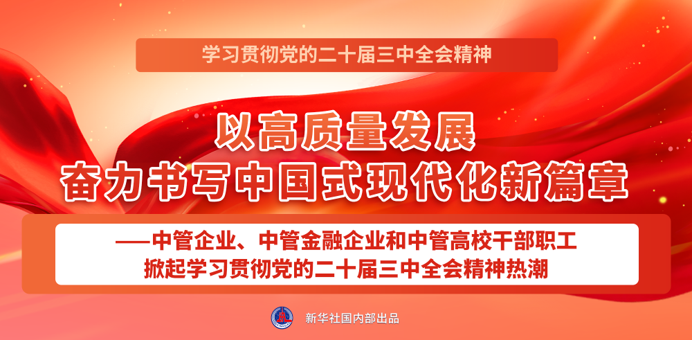 點(diǎn)擊標(biāo)題看詳情:以高質(zhì)量發(fā)展奮力書寫中國(guó)式現(xiàn)代化新篇章——中管企業(yè)、中管金融企業(yè)和中管高校干部職工掀起學(xué)習(xí)貫徹黨的二十屆三中全會(huì)精神熱潮