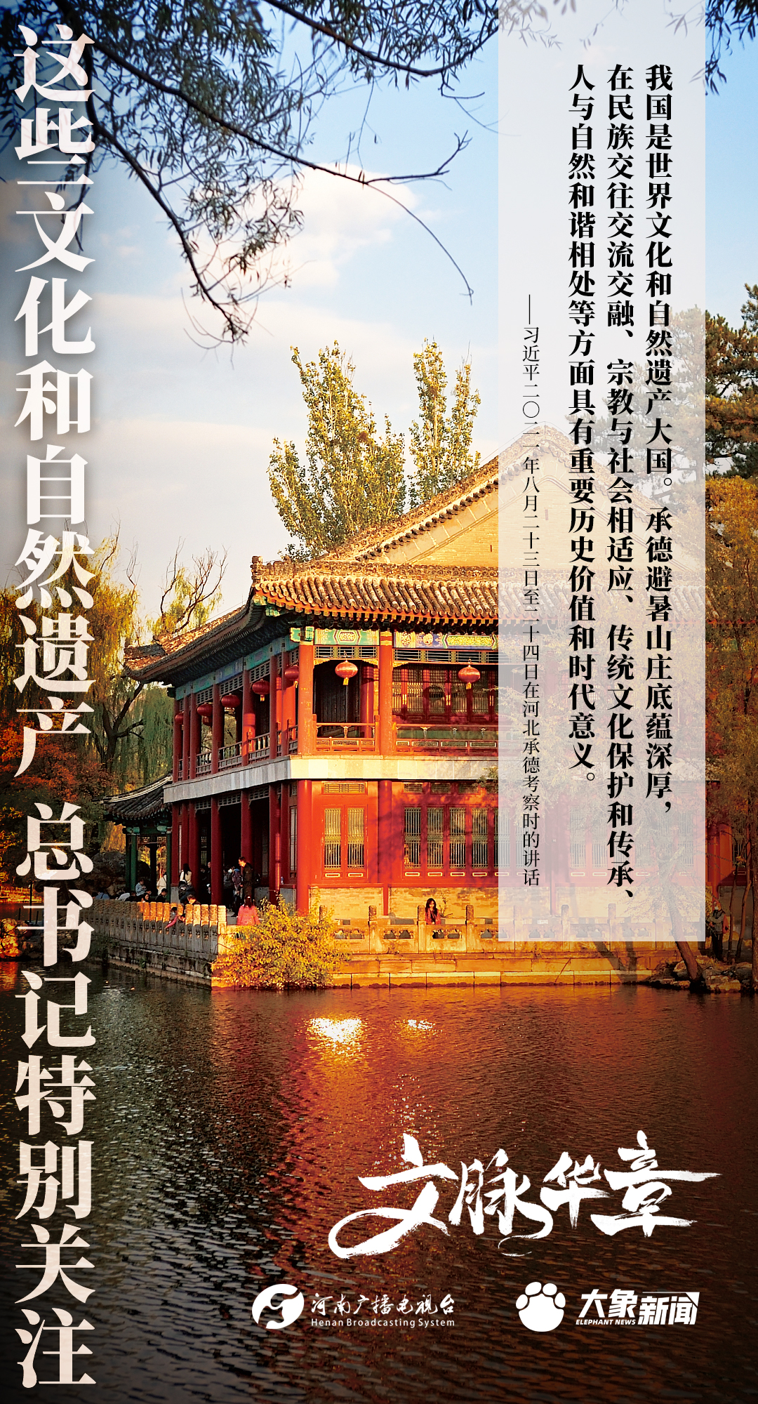 黨的十八大以來,習(xí)近平總書記對歷史文化遺產(chǎn)和自然遺產(chǎn)的保護、傳承、利用高度重視,進行了一系列考察調(diào)研,作出一系列重要講話重要指示。大象新聞為您梳理,邀您一起學(xué)習(xí)、領(lǐng)悟、踐行。