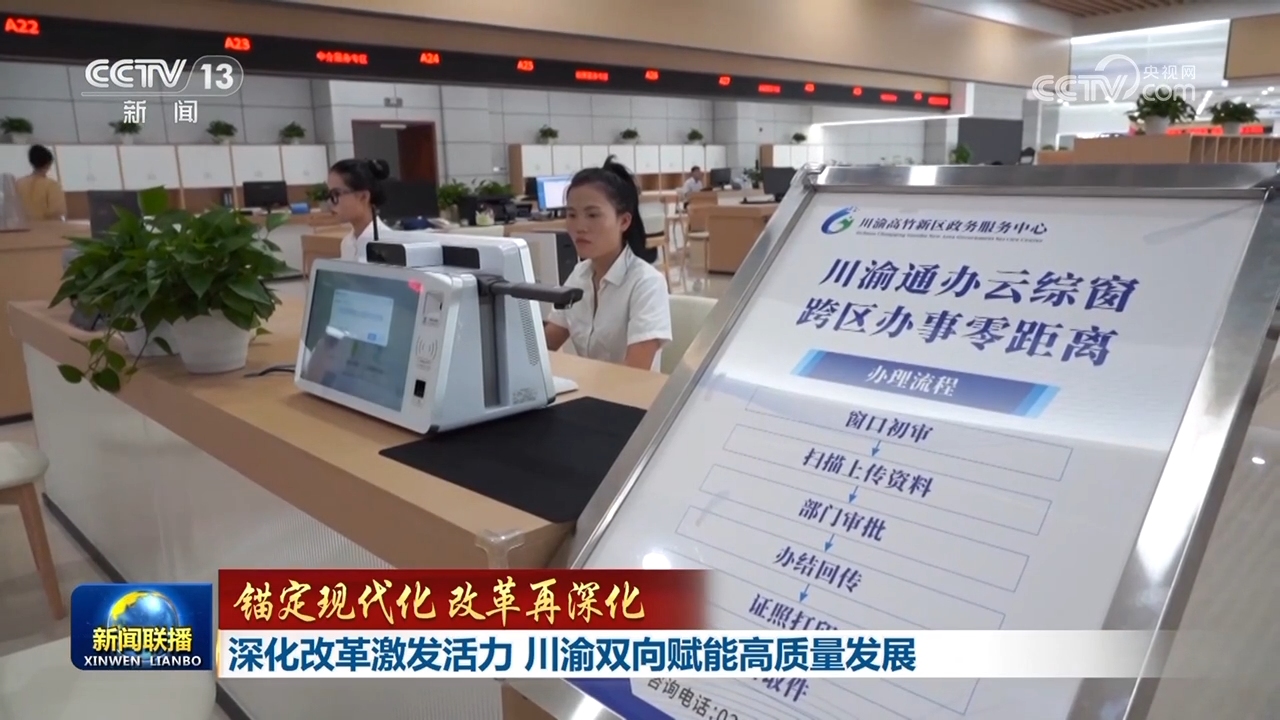 川渝高竹新區(qū)地處四川、重慶交界,由四川廣安市和重慶渝北區(qū)部分行政區(qū)域組成,是全國首個跨省域共建的新區(qū)。在前不久建成投用的新區(qū)政務服務大廳,10多個服務專區(qū)里川渝兩地合署辦公,將百余項業(yè)務合并辦理,為新區(qū)企業(yè)和百姓提供了“進一扇門,辦兩地事”的便捷體驗。