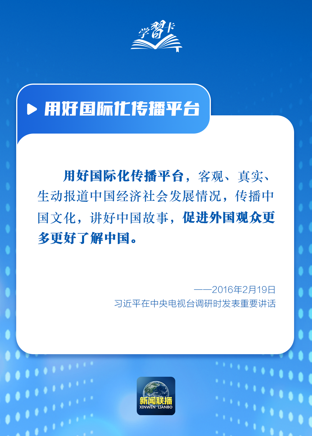習(xí)近平總書記高度重視國際傳播能力建設(shè),指出當(dāng)前外宣工作處于歷史最好時期,同時也面臨最大壓力,強調(diào)要全面加強和改進國際傳播工作,深化文明交流互鑒,形成同我國綜合國力和國際地位相匹配的國際話語權(quán),增強中華文明傳播力影響力。一起學(xué)習(xí)↓