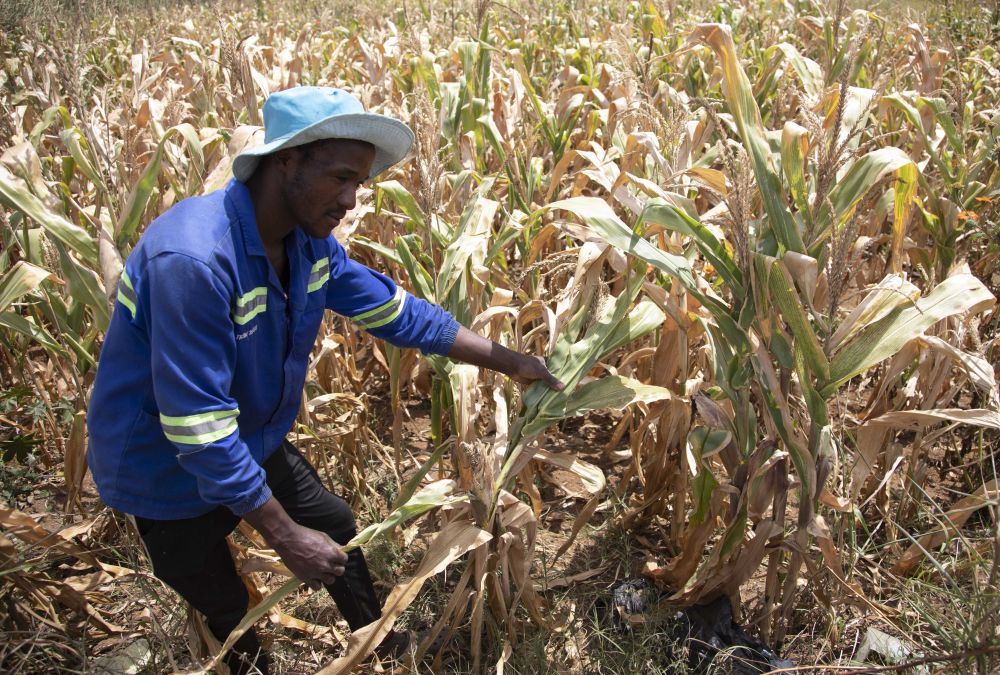 4月3日,農民在津巴布韋首都哈拉雷近郊的一塊玉米地檢查作物長勢。新華社發(fā)