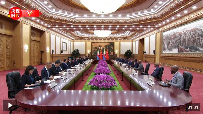 9月2日上午,國(guó)家主席習(xí)近平在北京人民大會(huì)堂會(huì)見(jiàn)來(lái)華出席中非合作論壇峰會(huì)的科摩羅總統(tǒng)阿扎利。