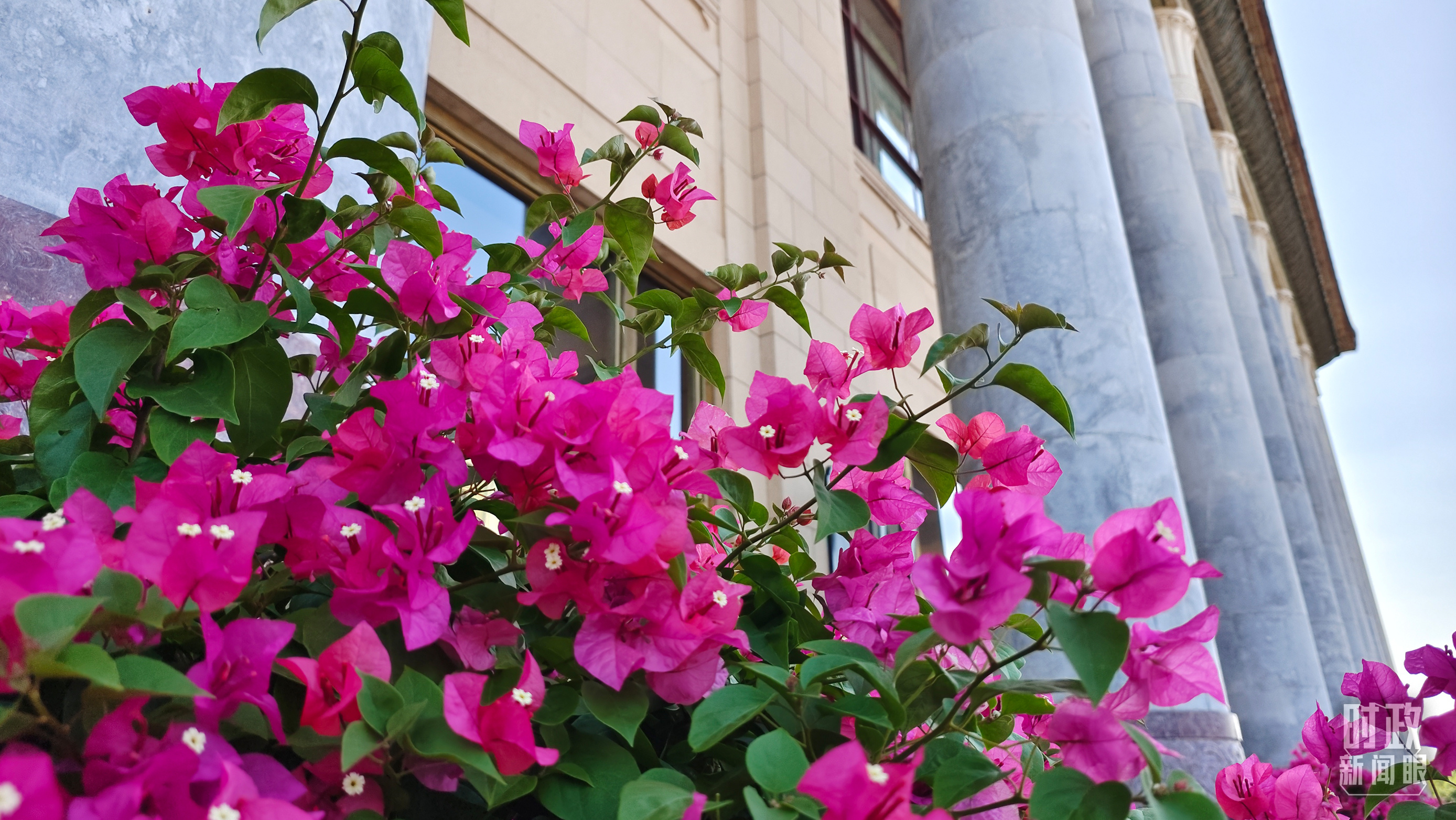 人民大會堂外花團錦簇。(總臺央視記者韓銳拍攝)