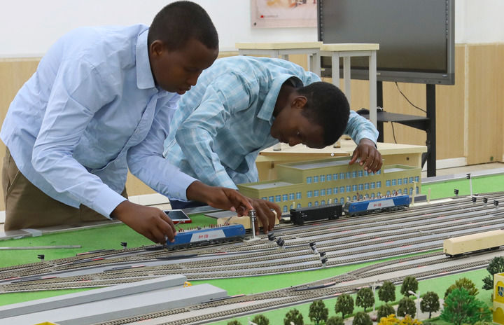 2022年9月19日,在位于吉布提首都吉布提市的吉布提工商學(xué)校,學(xué)生在魯班工坊鐵道運(yùn)營沙盤教學(xué)區(qū)學(xué)習(xí)。新華社記者 董江輝 攝