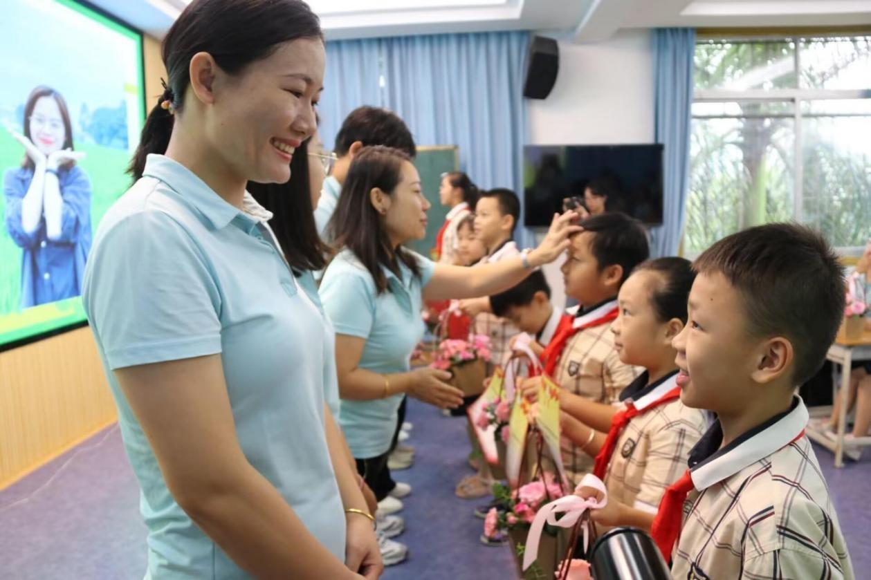2023年教師節(jié)前,廣西南寧一所學校,學生向老師獻上鮮花、賀卡。