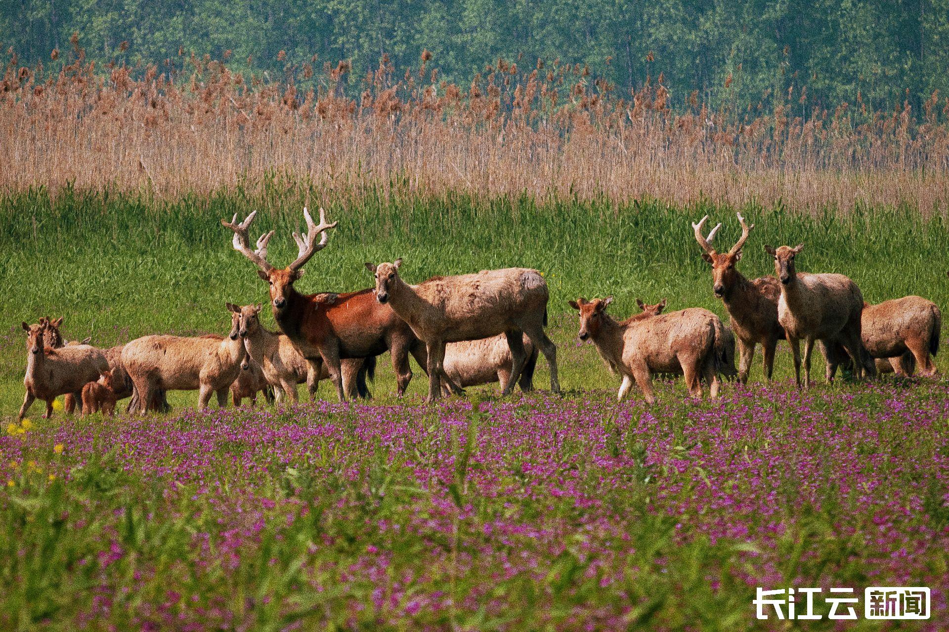 荊州是麋鹿的故鄉(xiāng),今年麋鹿產(chǎn)仔季,石首麋鹿國(guó)家級(jí)自然保護(hù)區(qū)共有498頭小鹿出生,創(chuàng)歷史新高。截至目前,湖北石首麋鹿數(shù)量已增至3800多頭,是全球最具規(guī)模與活力的野生麋鹿種群,被聯(lián)合國(guó)教科文組織稱(chēng)贊為“全球?yàn)l危物種保護(hù)的成功范例”。