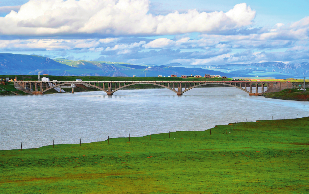 甘肅省甘南藏族自治州瑪曲縣城郊的黃河大橋附近的沙化退化草場已經(jīng)復(fù)綠(2023 年7月6日攝) 陳斌攝 /本刊