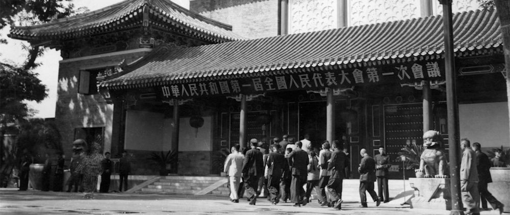 通過長(zhǎng)期浴血奮戰(zhàn)和艱辛探索,中國(guó)共產(chǎn)黨領(lǐng)導(dǎo)人民建立了人民民主專政的社會(huì)主義國(guó)家。1954年,人民共和國(guó)的締造者們,同經(jīng)過普選產(chǎn)生的1200多名全國(guó)人大代表一道,召開了第一屆全國(guó)人民代表大會(huì)第一次會(huì)議,歷史由此翻開新的篇章。